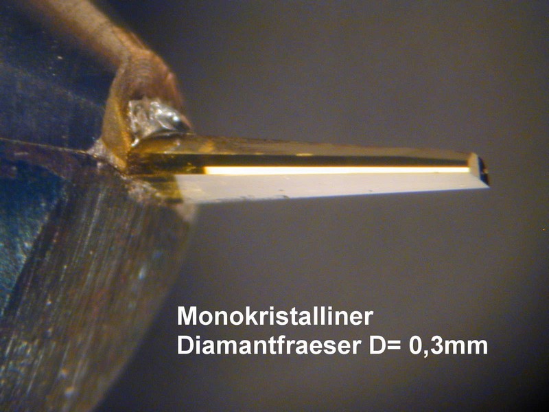 Bei Drehzahlen bis zu 50.000 1/min werden monokristalline Diamantwerkzeuge ab einem Durchmesser von 0,2 mm eingesetzt.